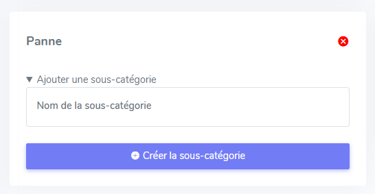 Cliquer sur Ajouter une sous-catégorie pour ouvrir le formulaire et saisir le nom de la nouvelle sous-catégorie.