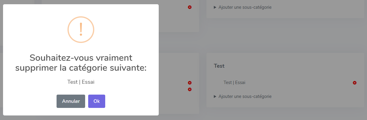 Cliquer sur la croix à côté de la catégorie pour la supprimer.