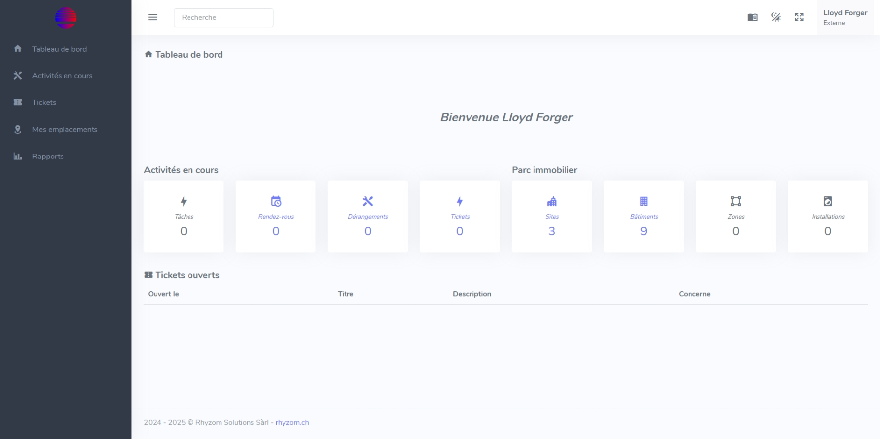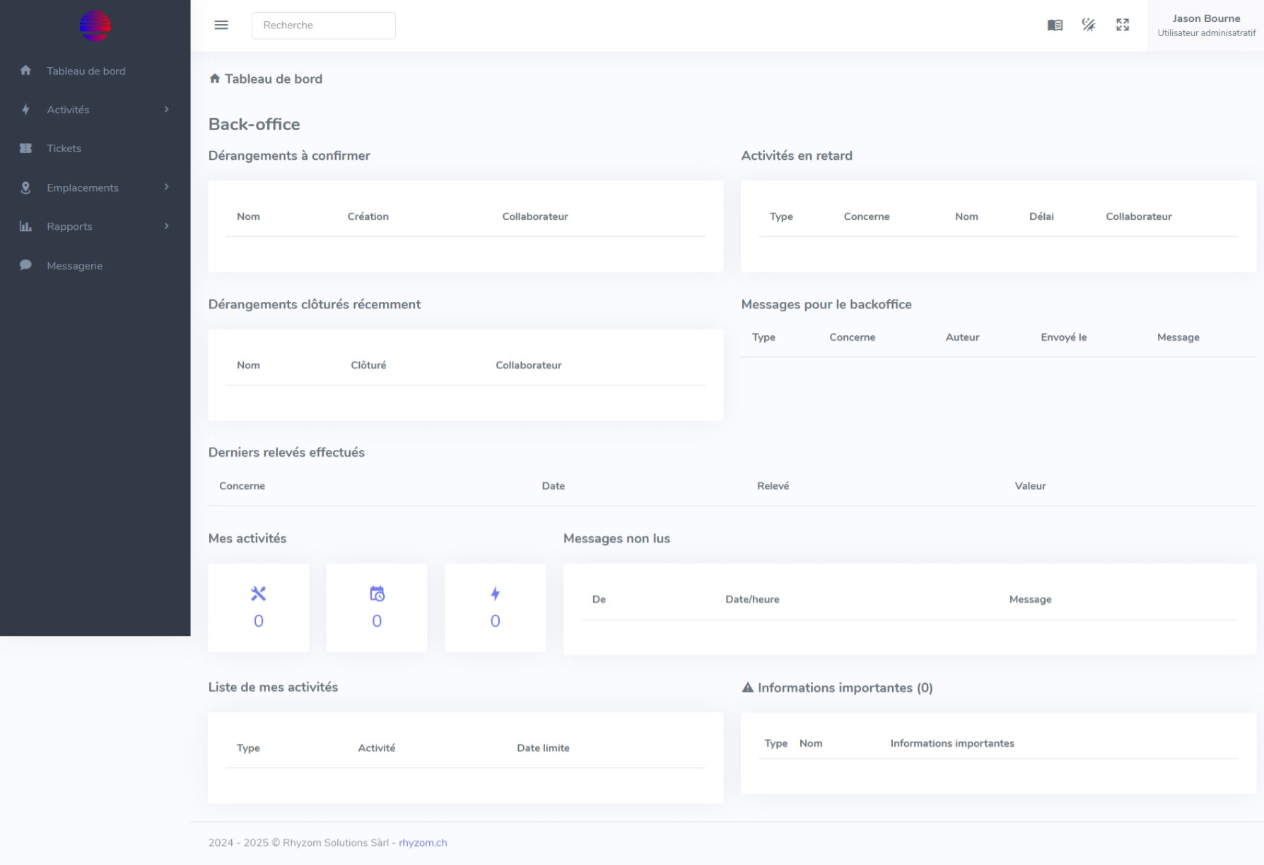 Le tableau de bord vous permet de visualiser rapidement les informations actuelles.