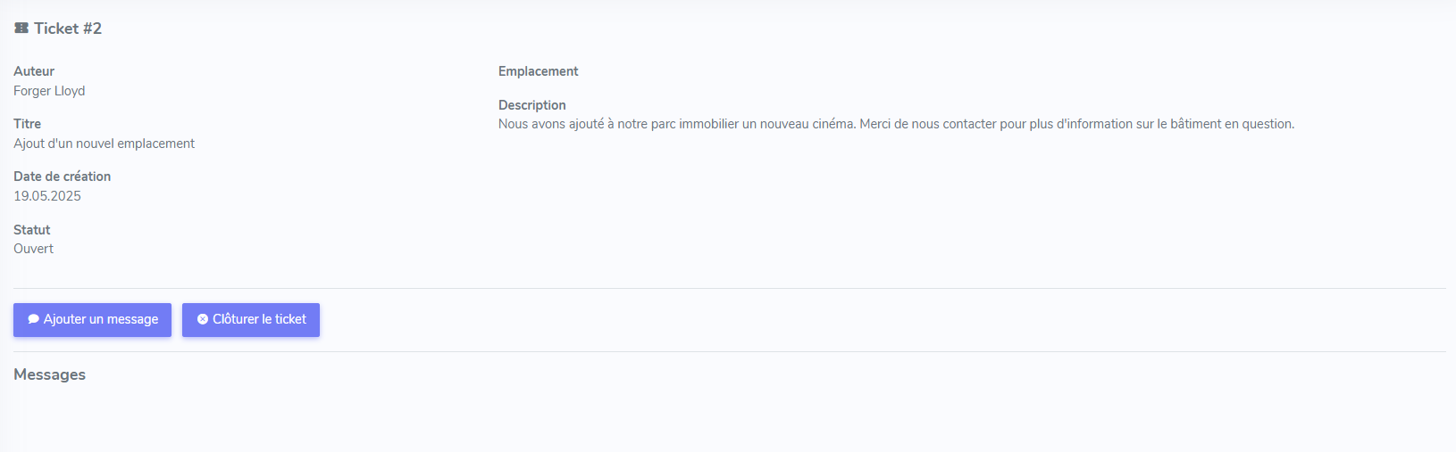 🟨🟥 vue d'un ticket sans emplacement pour un utilisateur administratif